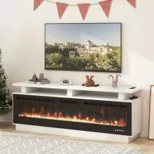 This TV stand is not just a piece of furniture; it’s a lifestyle upgrade. The integrated fireplace delivers a cozy warmth, while the LED lights allow you to create a vibrant or relaxing atmosphere depending on the mood. Whether you’re setting up a modern entertainment center or adding character to a rustic-themed room, this unit fits the bill perfectly. Its thoughtful design includes cable management holes to keep your space neat and tidy, making it as practical as it is beautiful.